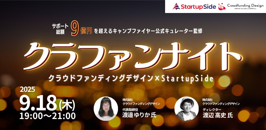 2025.09.18 EVENT StartupSide Moriya様主催「クラファンナイト 〜Series Pitch〜」に登壇 9月18日にStartupSide Moriyaで開催された「クラファンナイト 〜Series Pitch〜」に登壇しました。 クラファンナイト〜Series Pitch〜